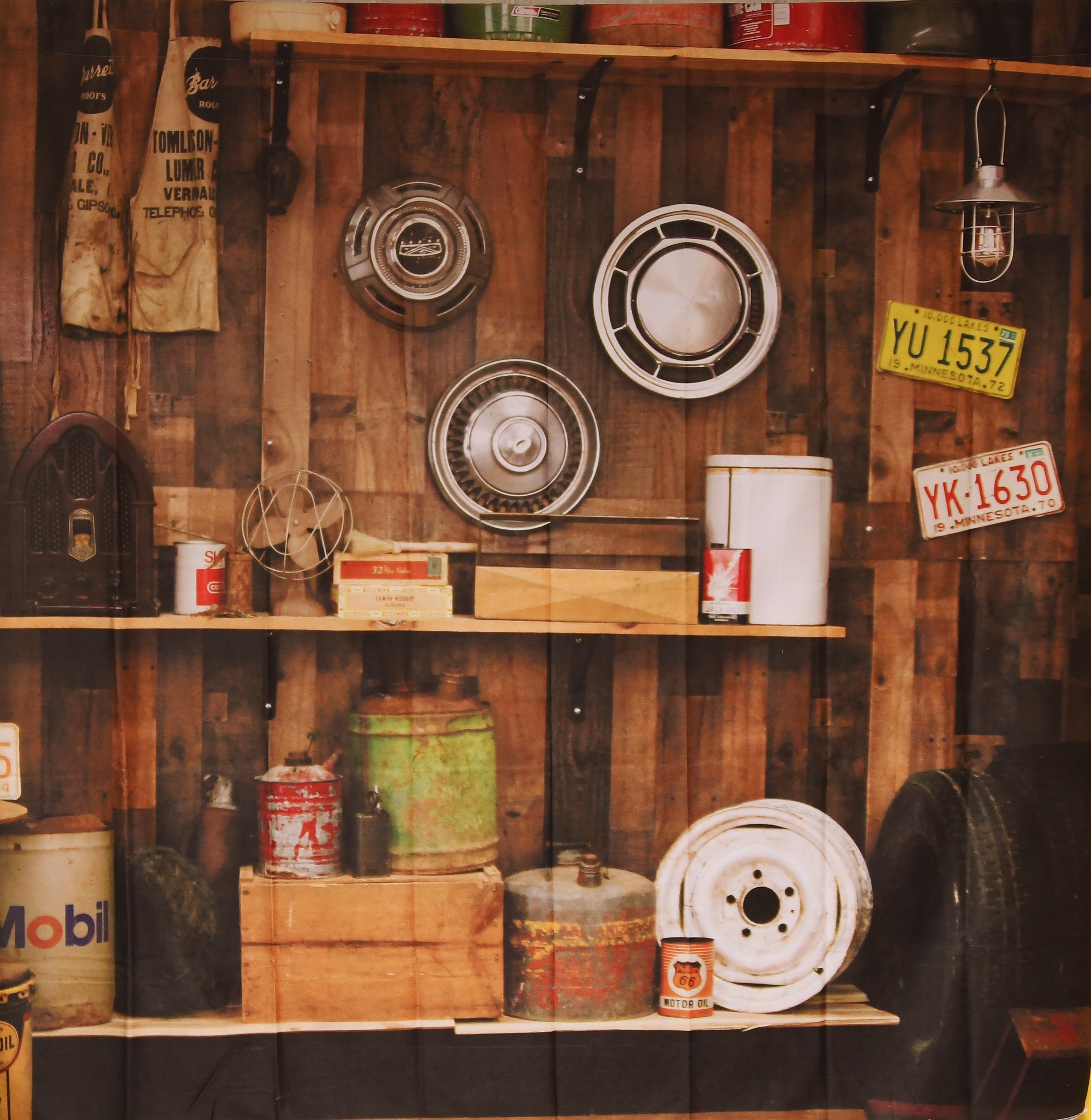Magnifique fond imitation intérieur de garage, avec de multiples détails très réalistes.